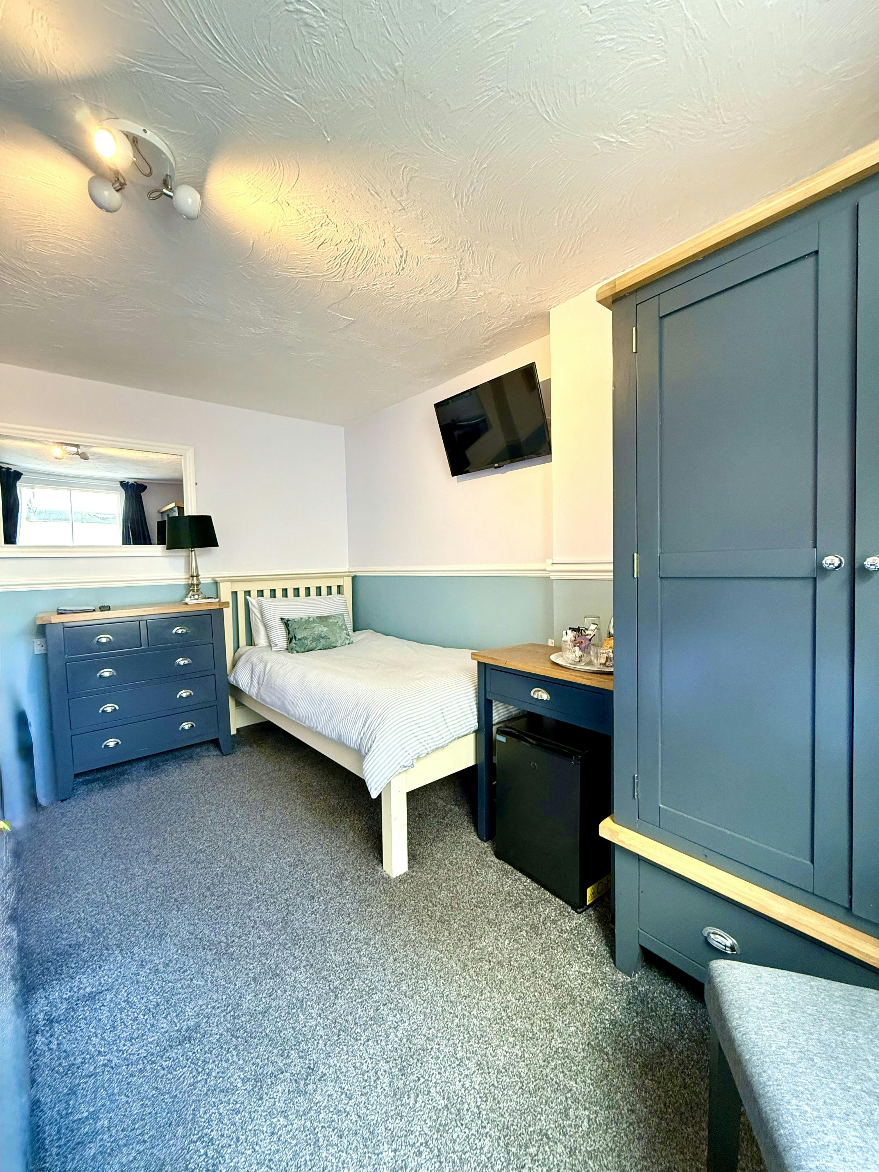 A comfortable room for up to 3 people with three single beds, offering Freeview TV, mini fridge, fan, tea & coffee making facilities and en-suite shower rooms with towels & toiletries.